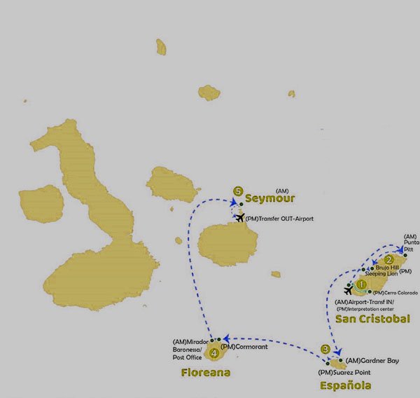 | Monday: | AM: San Cristobal Is: Airport and transfer | PM: San Cristobal Is: Interpretation / C Colorado |